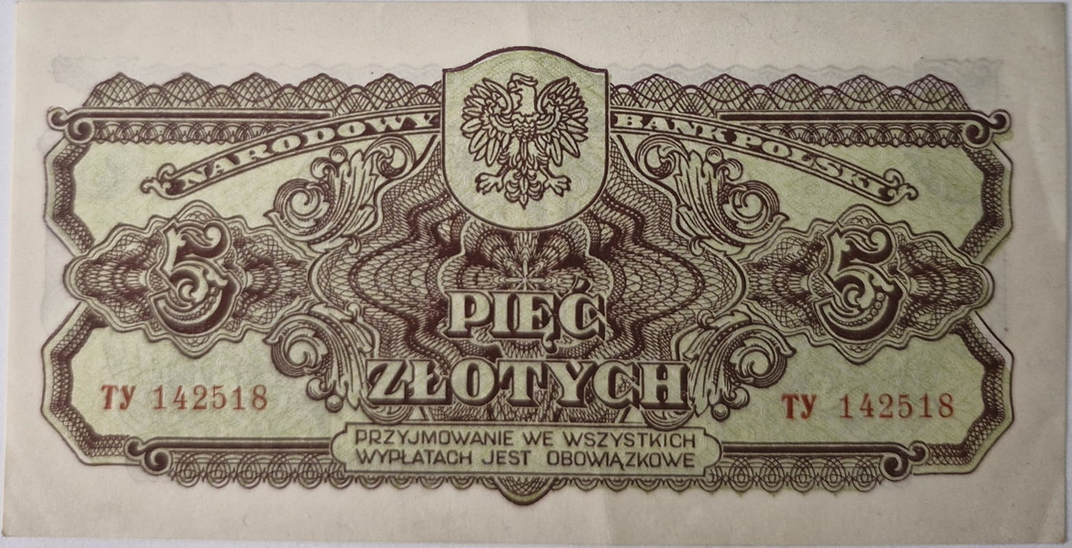 Banknot 5 zł 1944 seria lubelska "-owe"