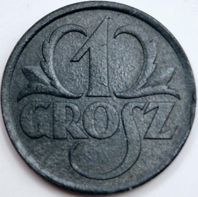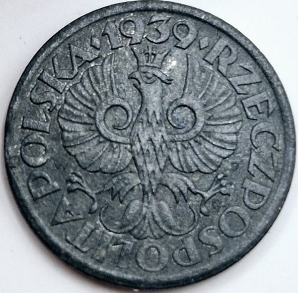 1 grosz 1939 r. - moneta obiegowa z okresu II Rzeczpospolitej Polskiej, metal brąz, emitent Bank Polski, producent Mennica Państwowa, stempel zwykły, stan zachowania -1/+2, real foto