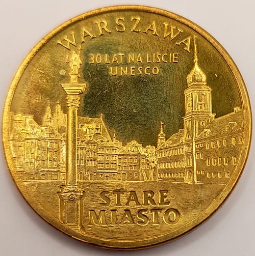 2 złote Warszawa 30 lat na liście UNESCO 2010 r. - moneta okolicznościowa Nordic Gold, producent Mennica Polska S.A. z serii Zamki i Pałace w Polsce, stempel zwykły, moneta w kapslu ochronnym, stan zachowania menniczy standard bicia