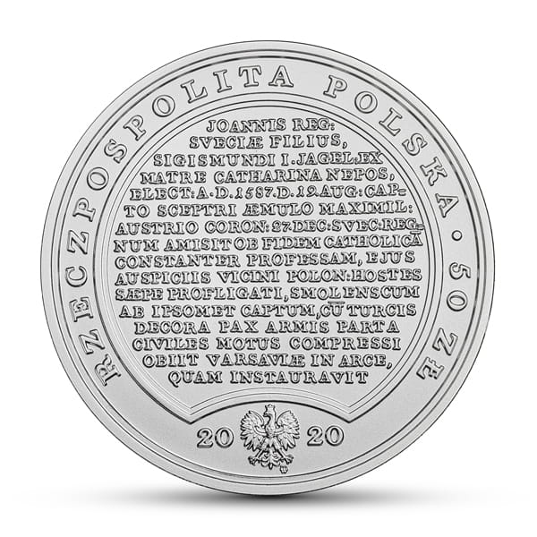 50 zł Zygmunt III Waza 2020 r. - srebrne monety kolekcjonerskie 50 złotych NBP, producent Mennica Polska S.A., z serii Skarby Stanisława Augusta, numer 16 z 24, stempel zwykły, moneta w pudełku z certyfikatem i folderem emisyjnym, stan zachowania menniczy